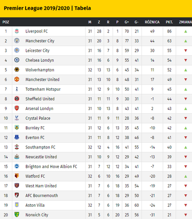 Tabela - Premier League 20202021 - 4. Najlepsza liga na świecie - newsy wydarzenia wyniki meczów. Wyniki na żywo statystyki strzelcy tabele składy relacje i analizy.